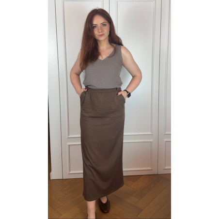 Planty - Top lniano - wiskozowy na szerokich ramiączkach - szarobrązowy