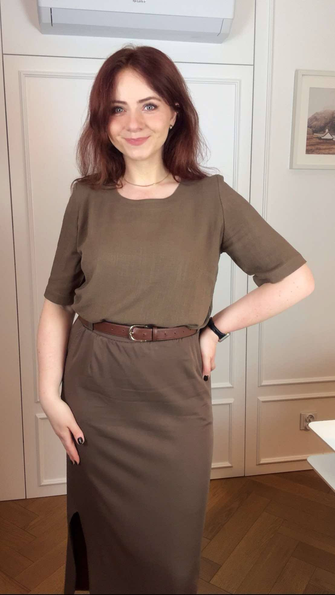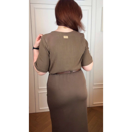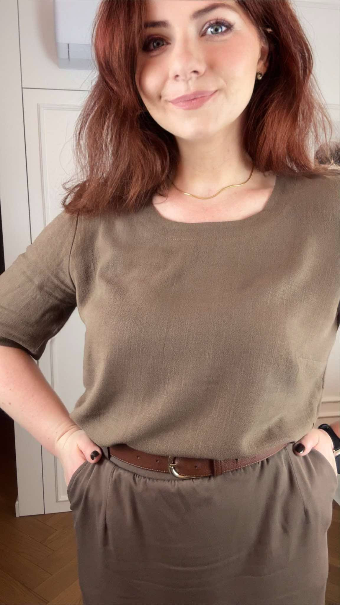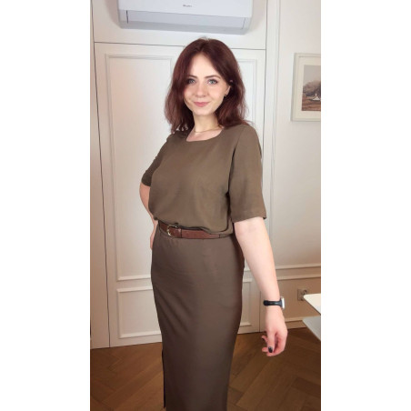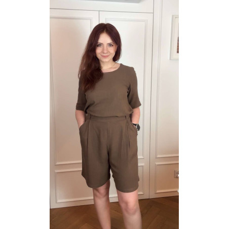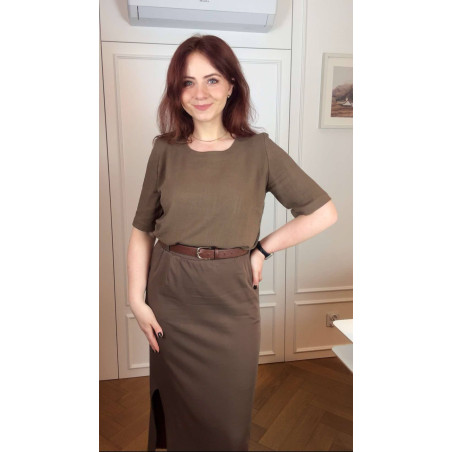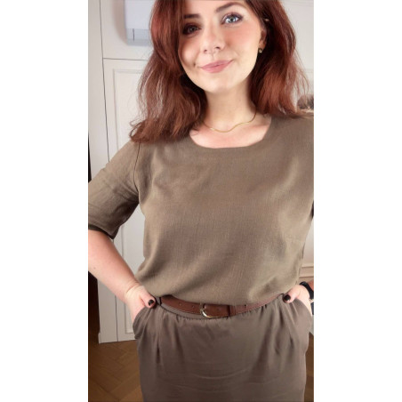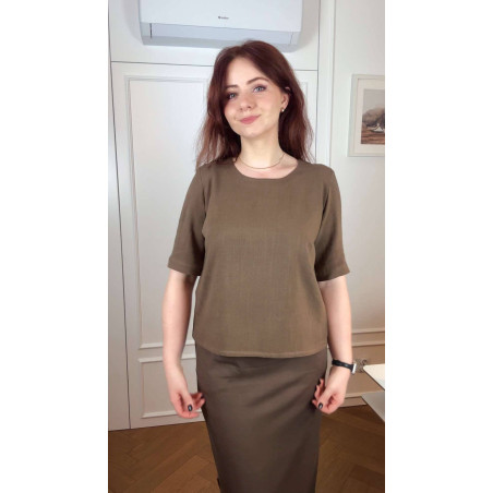 Bernatka - Bluzka lniano-wiskozowa z dekoltem U - orzech laskowy