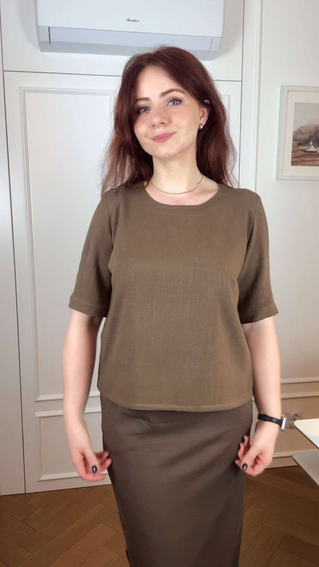 Bluzka została skrojona ręcznie i uszyta w naszej małej pracowni w Krakowie.