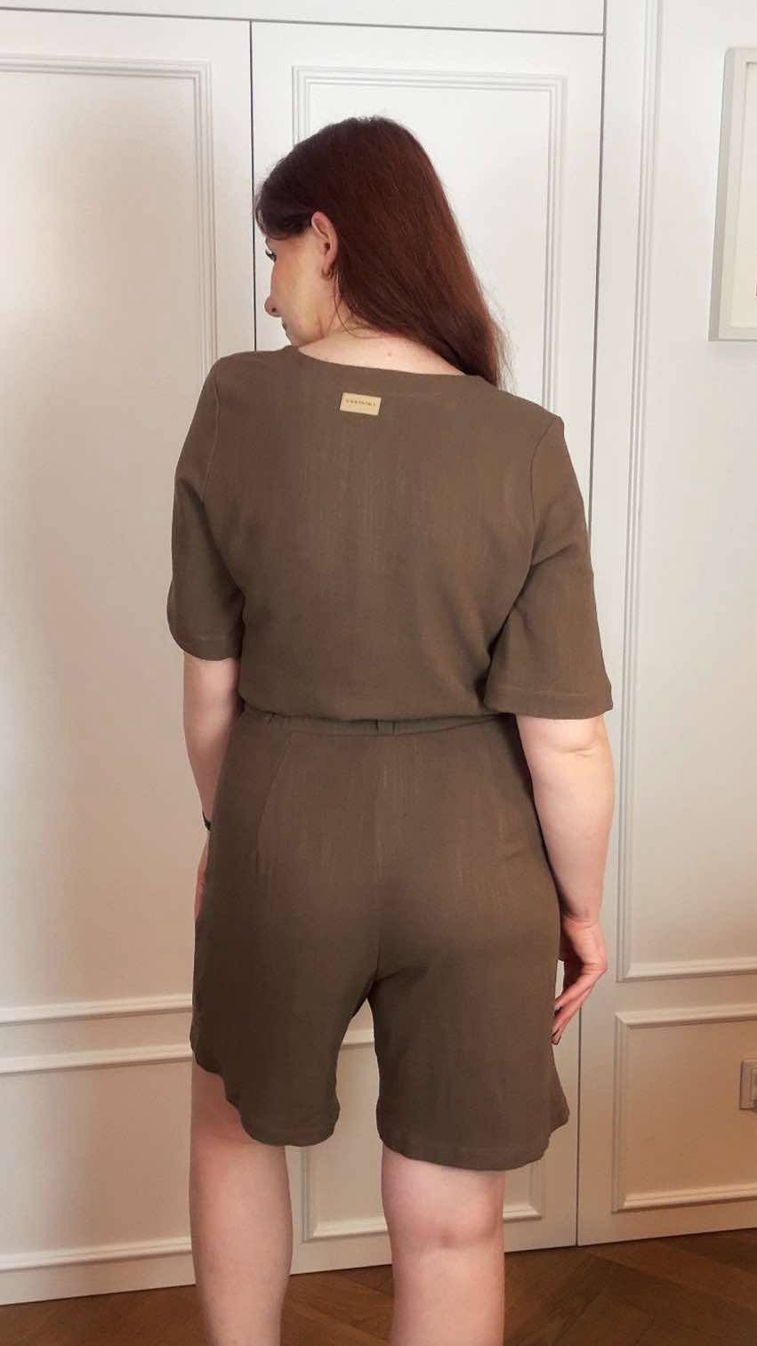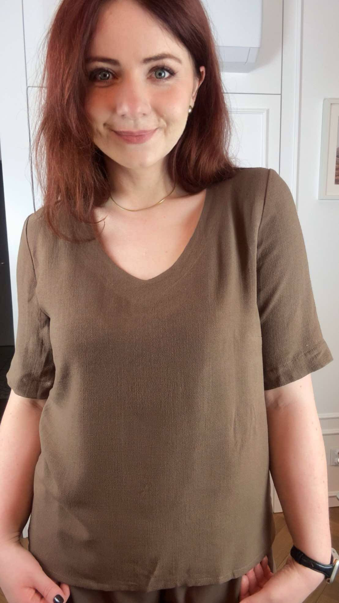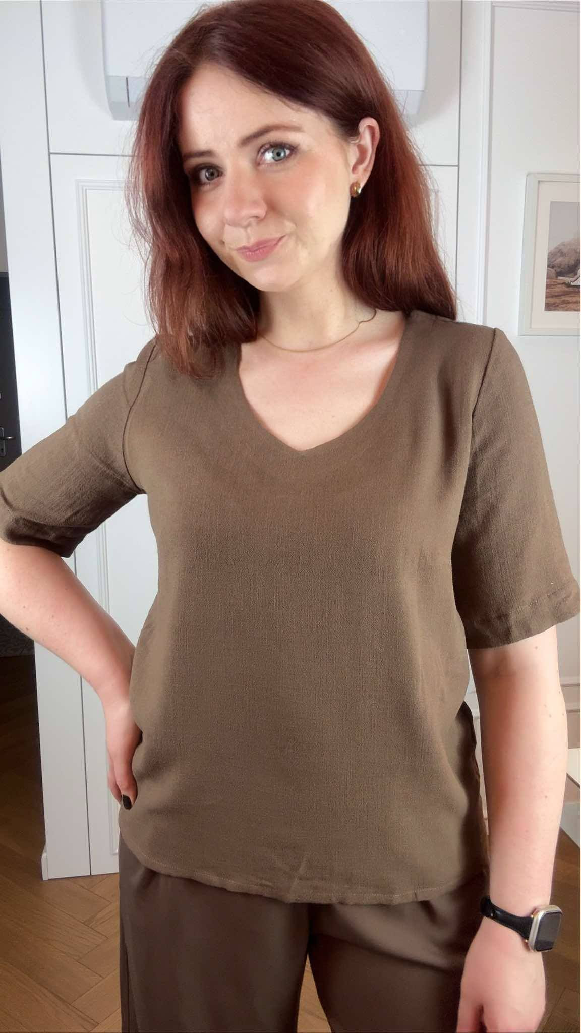Bernatka - Bluzka lniano-wiskozowa z dekoltem V - orzech laskowy