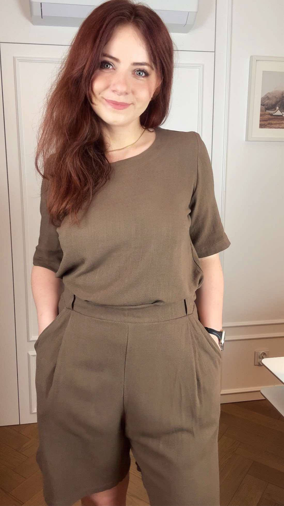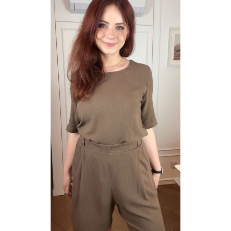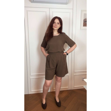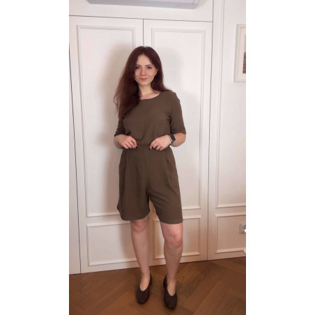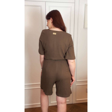 Maius 2.0 - Wydłużone szorty z wysokim stanem - lniano-wiskozowe - orzech laskowy